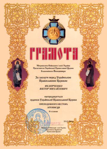 Орден "Преподобного Нестора Літописця" II ступеня