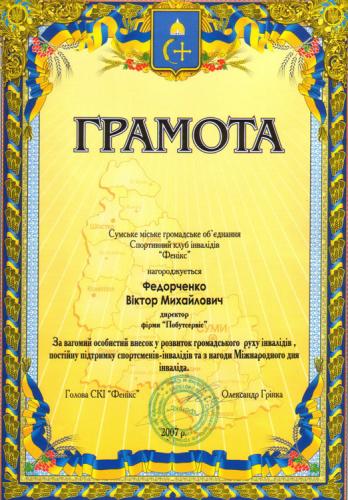 Дільниця з капітального будівництваЗа вагомий особистий внесок у розвиток громадського руху інвалідів, постійну підтримку спортсменів-інвалідів