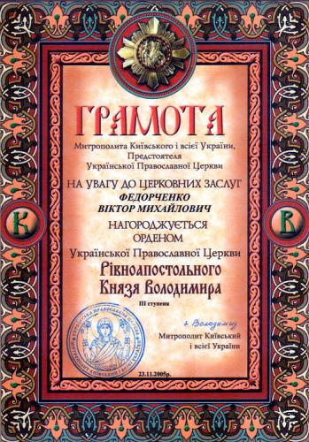 Шлях від «Фірми» до «Компанії»Митрополіта Київського і всієї України Української Православної Церкви "На увагу до церковних заслуг"