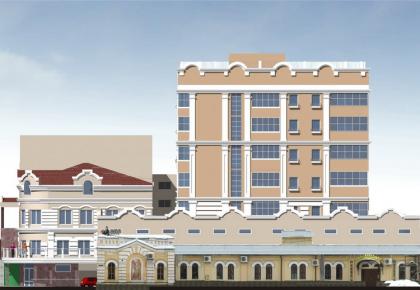 П'яти поверховий адміністративно-діловий центр з житловим будинком та приміщеннями для громадського харчування і торгівлі у центрі міста. Поспішайте - залишилося декілька квартир.